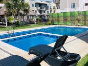 ...Departamento Amueblado y Equipado en Jardines de Mayakoba! Ubicado en Planta Baja, cuenta con 3 Recámaras, 1 Baño Completo, Sala, Comedor, Smart TV y Cocina Integral, Patio con Lavadora. Amenidades Reja Electrónica, Alberca con Palapa y Asador, Canch...