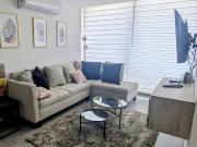 ...amueblado listo para habitar en dos niveles. Cocina equipada, desayunador, sala con TV, medio baño, área de lavandería en planta baja, en segundo nivel espacio de trabajo con escritorio, dos habitaciones con su clóset, un baño completos. Mini splits,...